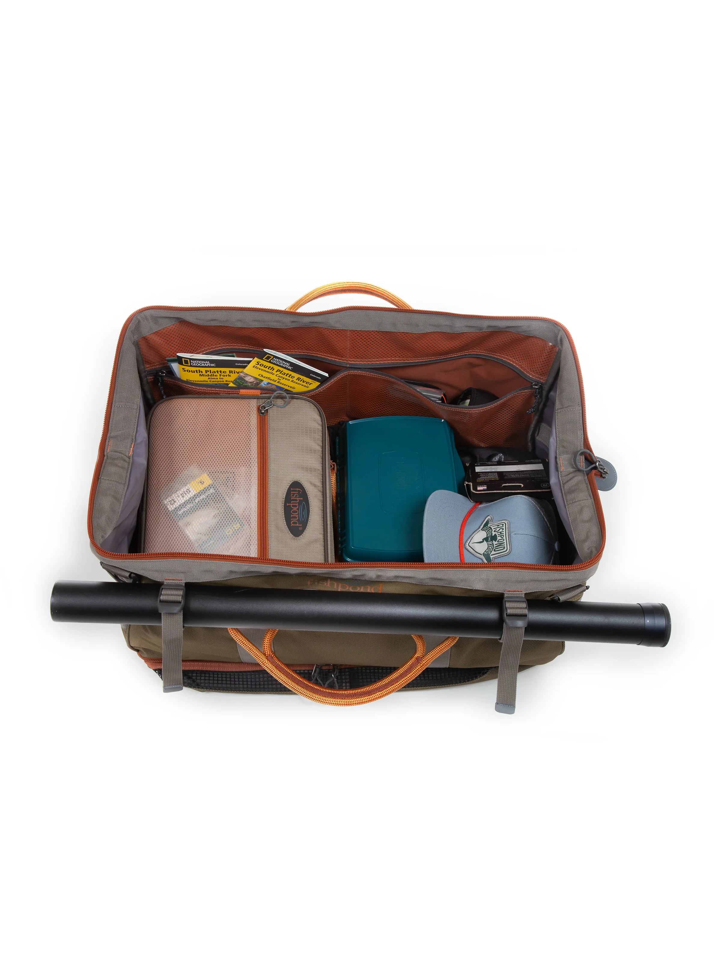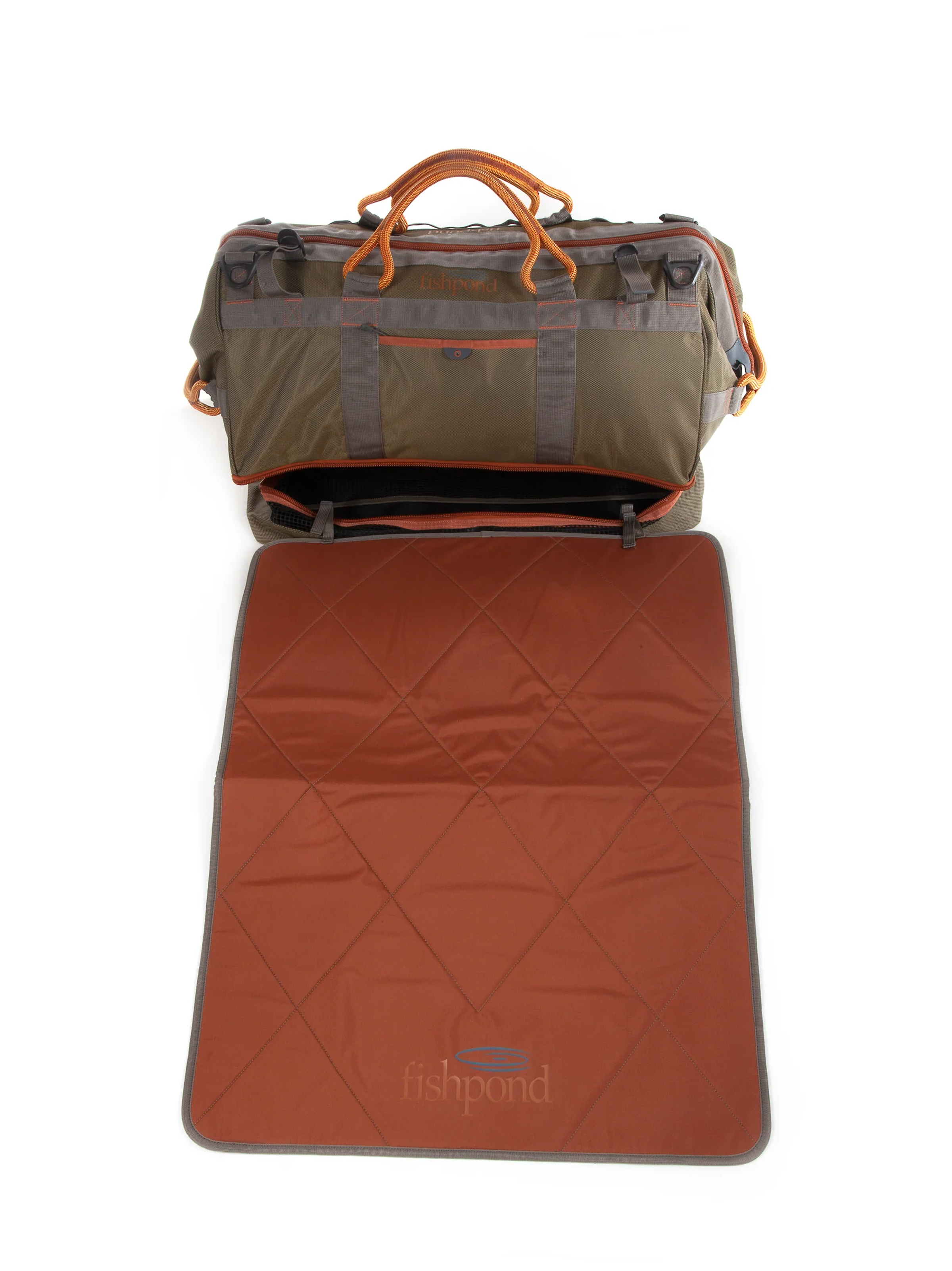As part of the 2023 product line, I updated this large capacity duffel to be the ideal fishing partner to haul all you would need out on the water at a moment’s notice. It comes with a detachable, and washable, insulated wader mat, so you don’t have to stand in dirt while you change back after a day out on the water. An additional feature added was a coated open mesh divider to separate your boots from your waders in the base. The entire base pocket is protected by a coated fabric in the base of the main compartment to keep your gear dry, and your waders airing out.